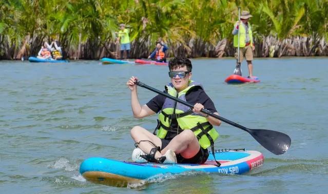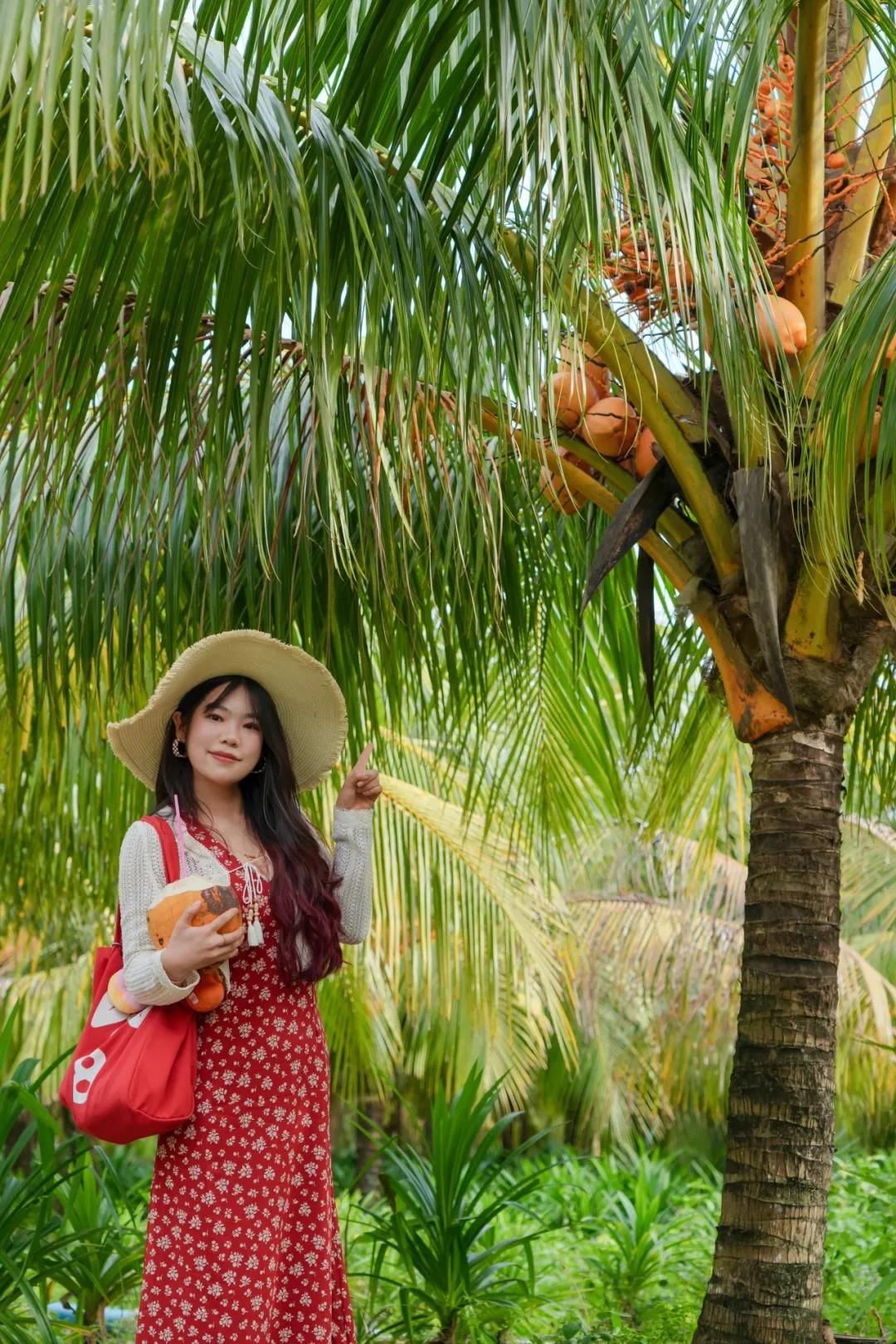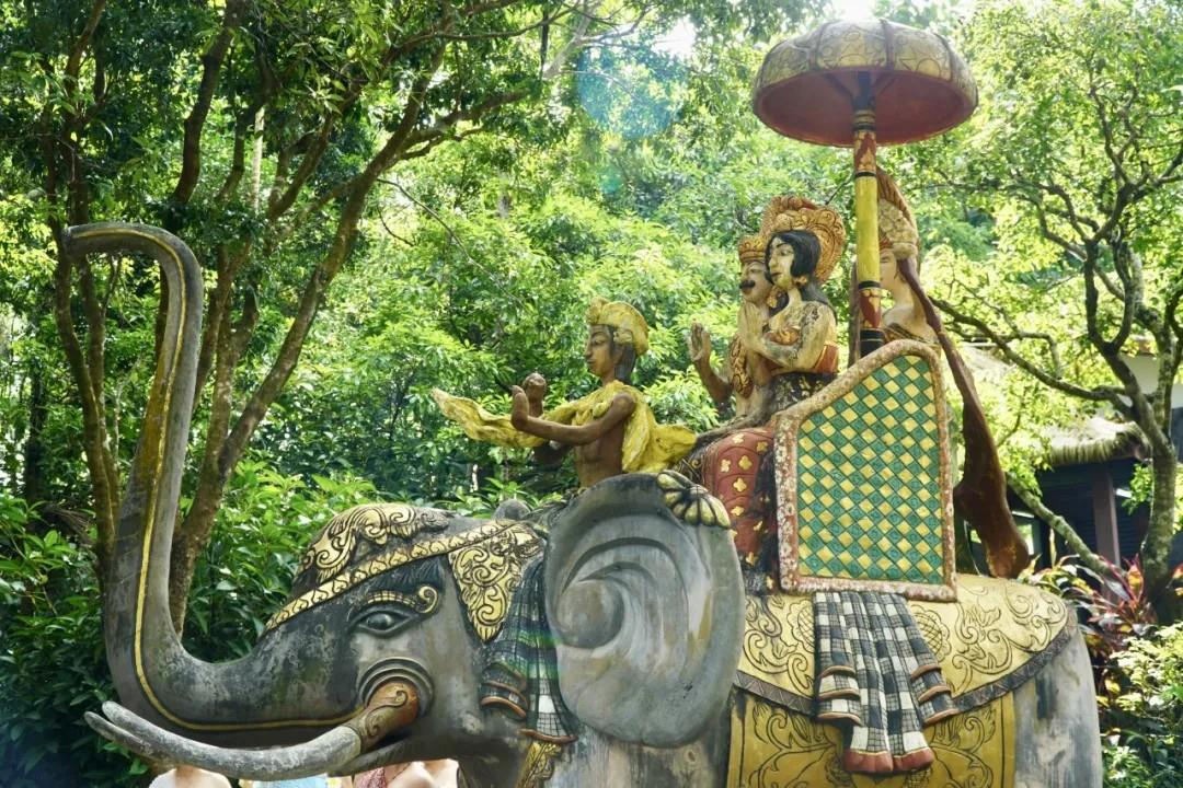 巴厘村内百花争艳,树木高耸,充满异域风情的画作与各式根雕陈列其间,栩栩如生。这座融合了东南亚文化、海南本土风情和侨乡文化的村落,展示着南洋归侨回国后的生活风貌。