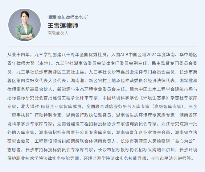 此次王雪莲律师入选首批建设工程争议评审专家,既是对其个人专业能力的高度认可,也是对湘军麓和律师事务所在建设工程法律领域专业实力的肯定。未来,王雪莲律师将珍惜这一荣誉,认真履行争议评审专家职责,充分发挥专业优势,为化解行业纠纷、规范建筑市场秩序、促进建筑行业高质量发展贡献力量。